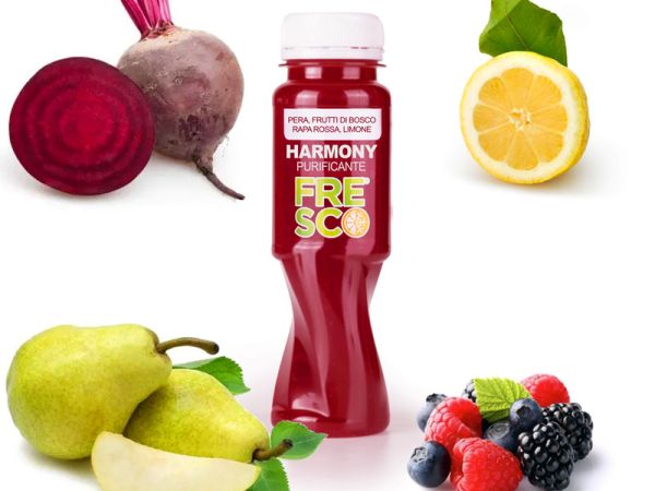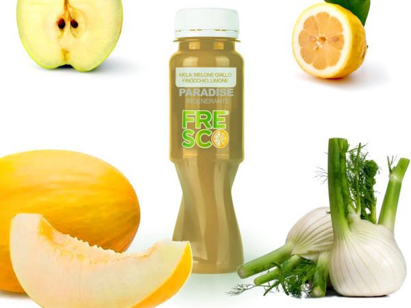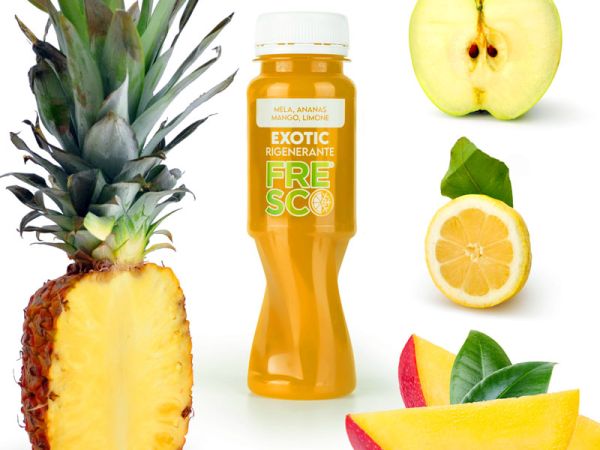 Fresco è puro estratto pressato a freddo 100% frutta e verdura cruda senza Coloranti, Conservanti, Acqua, Aromi, Zuccheri e Glutine.